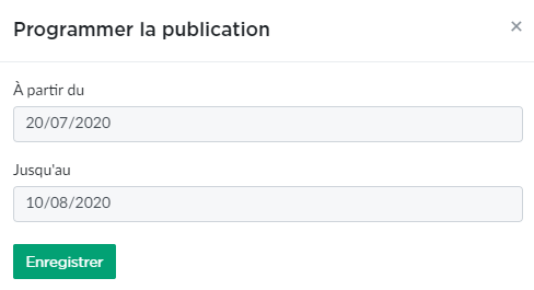 Programmer une publication Lors de mon action de publication je décide de la programmer en cliquant sur la flèche à coté de publier. Je sélectionne ensuite mes dates de publication