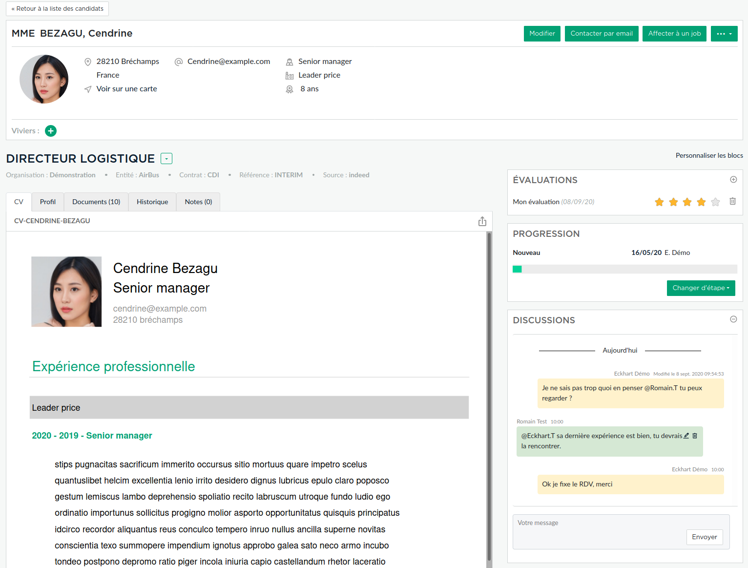 • Contrairement à la note qui concerne le candidat, la discussion concerne uniquement la candidature. Chaque candidature a donc son propre fil de discussion.