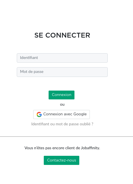- Connexion Google : Connectez-vous à JobAffinity avec votre compte Google. Cette fonction est la première étape vers l'intégration des emails et agendas Google.