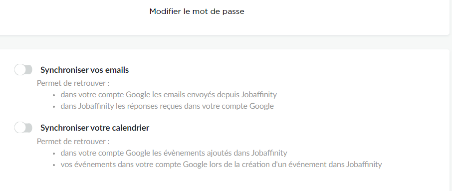 - Synchronisez vos e-mail Gmail ou Microsoft Azure avec Jobaffinity pour réceptionner les réponses candidats dans Jobaffinity.