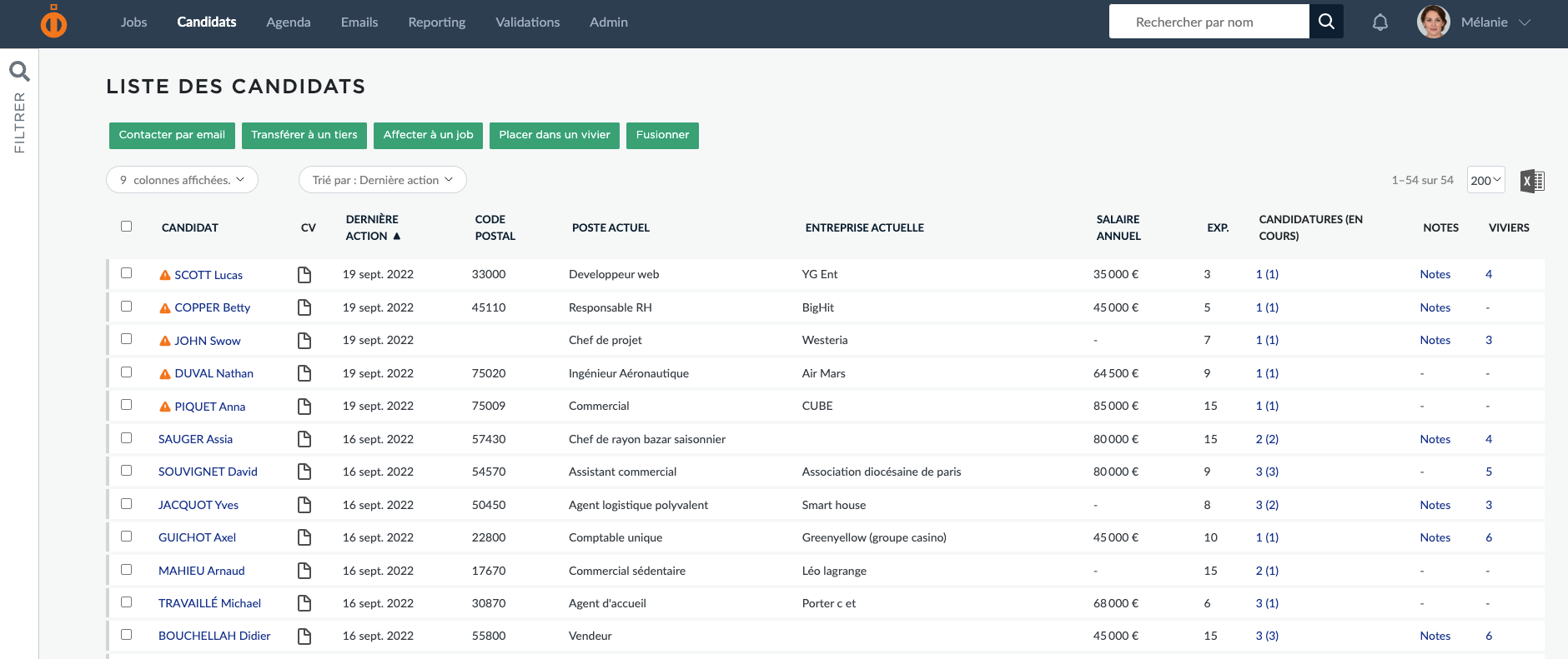 Vous souhaitez contacter les candidats arrivant à la fin de leur délai RGPD ? Le nouveau pictogramme d'alerte s'affiche 30 jours avant l'expiration, devant le nom de vos candidats.