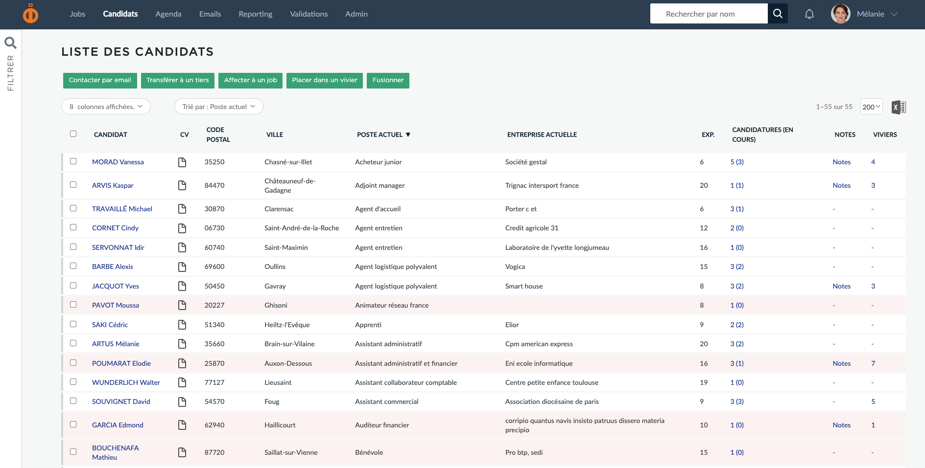 - Vous souhaitez mettre en avant une étape importante de votre processus ? Les administrateurs peuvent définir la ou les étapes importantes depuis le menu admin/processus. Si un candidat est dans une étape importante sur un de ses postes, il sera coloré en rouge dans les listes des candidatures, dans la Cvthéque et dans le détail de sa fiche candidat.