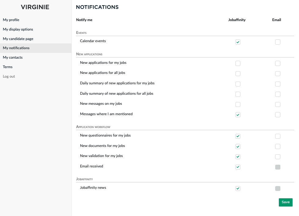 You can choose to be notified directly in Jobaffinity or by e-mail of