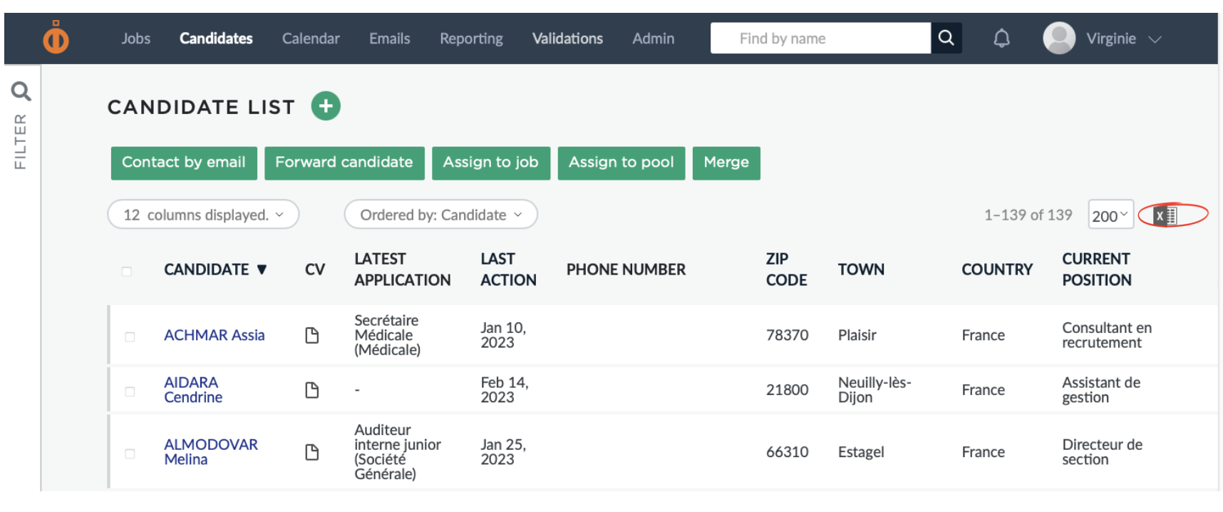 - You can then go to the "candidate" tab and click on the excel logo at the top right.