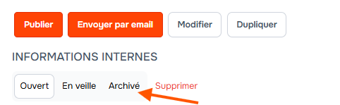 Pour cela cliquez sur le titre du poste et allez dans la section description, sous le titre orange « Informations Internes » passez le poste du statut ouvert ou en veille à « Archivé ».