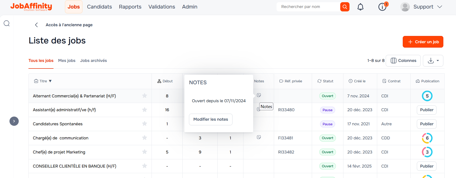Profitez désormais d’un chargement plus rapide de la liste de vos jobs, et découvrez la nouvelle colonne "Notes", qui vous permet de visualiser immédiatement les infos clés de chaque job, sans avoir à ouvrir la description de ce dernier. ☄️