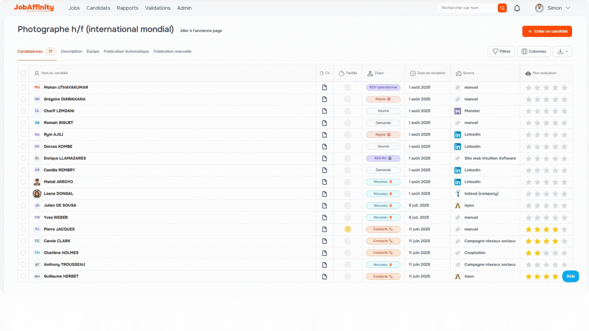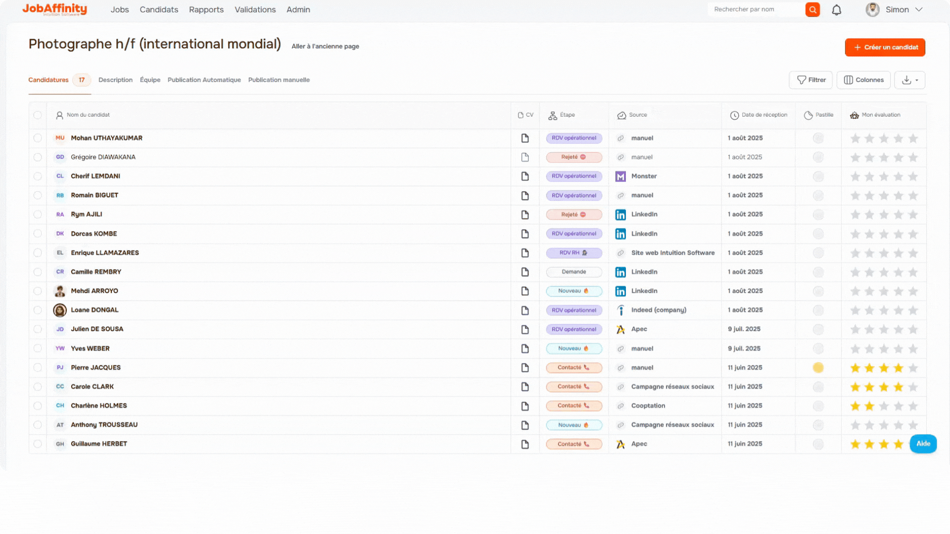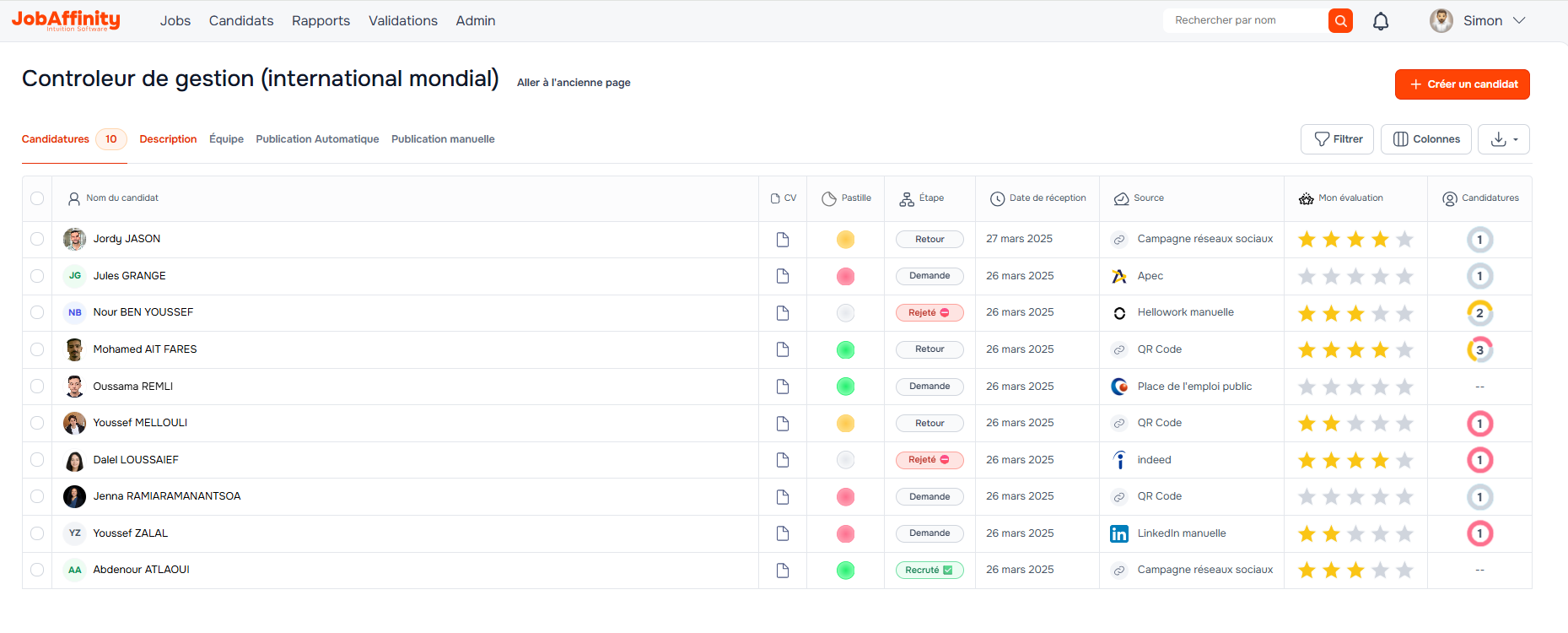 - Le logo des jobboards pour identifier la source des candidatures.
