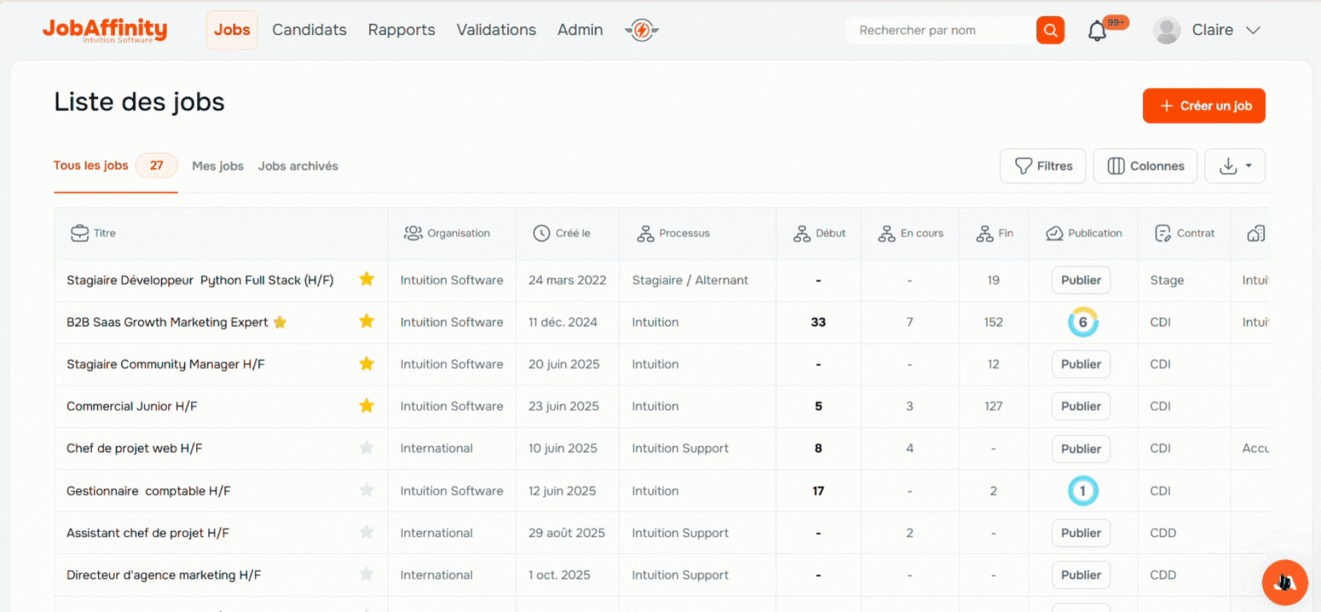 🔎 Navigation simplifiée : grâce à une refonte complète de l'interface, la recherche et le tri de vos candidats sont désormais plus fluides. Vous retrouvez rapidement l'information clé avec une lecture optimisée et une organisation visuelle claire.
