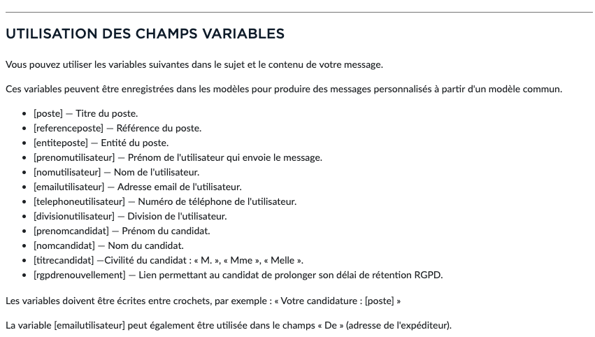 Vous n'avez pas besoin de commencer à paramétrer vos modèles. En effet, à chaque fois que vous enverrez un nouveau mail à un candidat vous pourrez choisir la case "et enregistrer comme modèle".