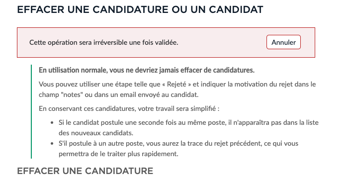 Depuis la fiche d'un candidat vous devez cliquer sur les trois petits points, en haut à droite, puis sur "effacer".